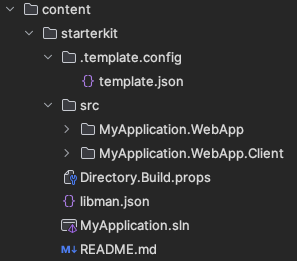 dotnet new install template.jsonHere's the structure you should have right now. Of course, the actual project inside starterkit will be different in your case.