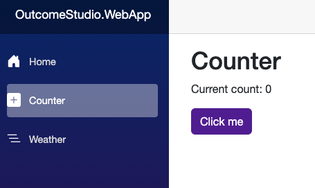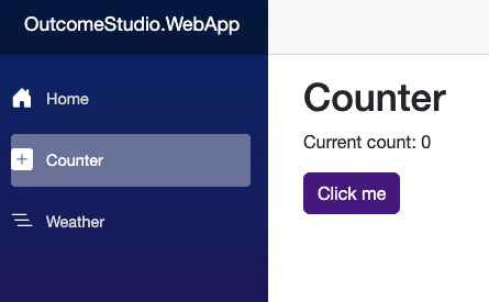 dotnet sln add src/OutcomeStudio.WebApp.Client/OutcomeStudio.WebApp.Client.csprojYou can run the project now and this is what you should see.